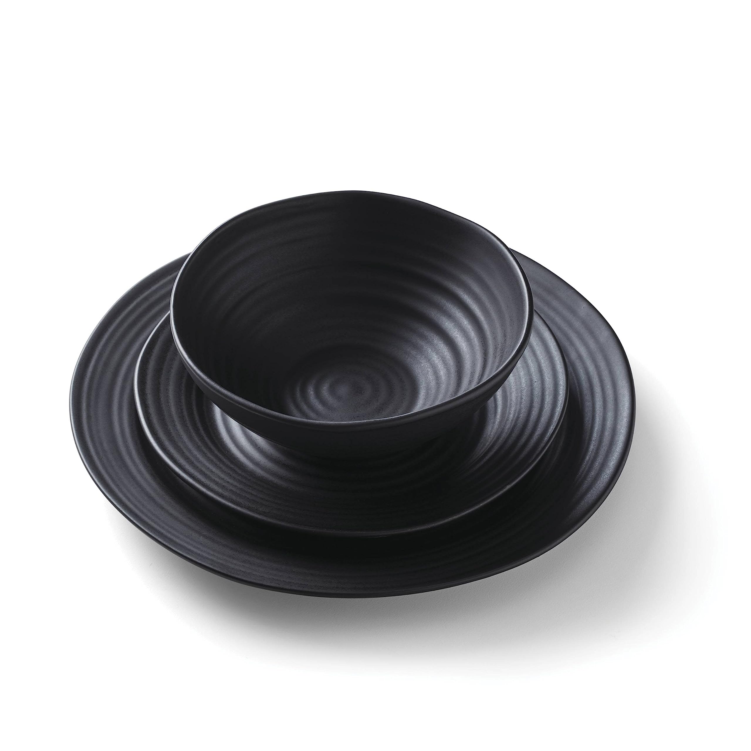 Oneida Black Ridge Piece Dinnerware Set, 12 Count, Dorm Room Essentials, First Apartment